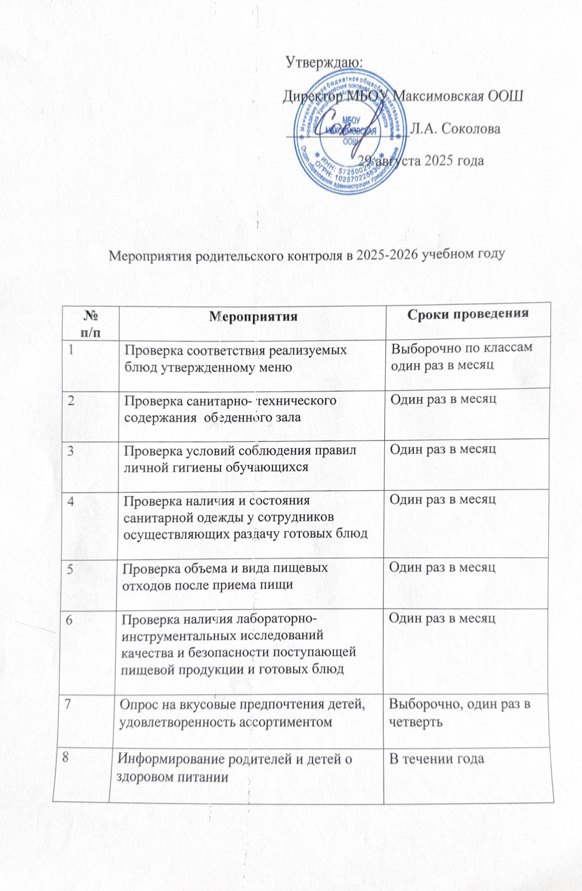 3.Мероприятия родительского контроля в 2025-2026 учебном году